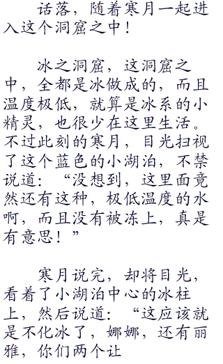 希罗娜,不断的行走在,这个冰天雪地之中,忽然间地面上出现了一个小疙瘩,希罗娜顿时,向着傍边摔去!寒月眼疾手快将希罗娜伏在怀中,不禁的说道:“娜娜,小心一点。”