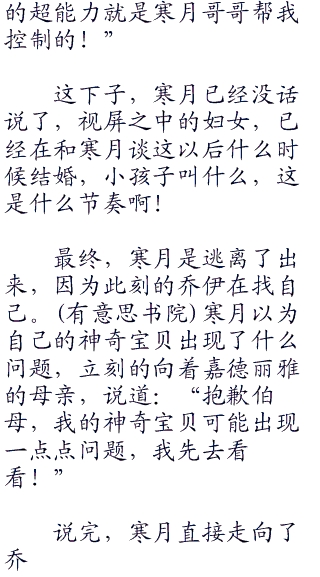 说完,寒月已经走向一边,静坐了起来。至于此刻的希罗娜,也是纷纷的找上了乔伊小姐。寒月在这里静坐,但是内心之中,却是暗道:“还是认识一个博士就好了,毕竟检查的话,还是博士检查的好一些!”