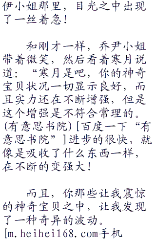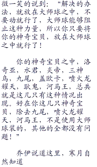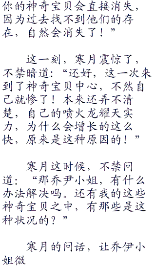 寒月点了点头,然后说道:“那也希望,你看了我的神奇宝贝,别惊讶。另外替我保密哦!”