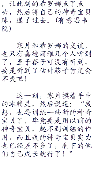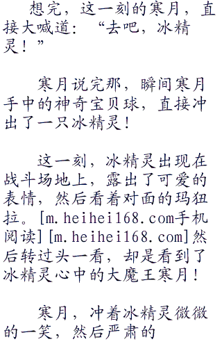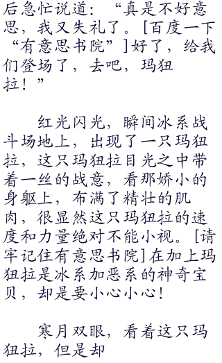 寒月将烈咬路鲨收了回来,然后看着菘子,继续说道:“菘子馆主,你还是先派出你下一个神奇宝贝吧,毕竟这可是道馆挑战赛!”