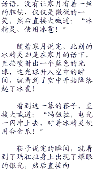 你的暴雪王,一而再再而三,被烈咬路鲨打爆了绝招,内心之中除去恐惧和迷茫,就没有一次战意。在这时候,面对这烈咬路鲨的攻击,你会发自内心的恐惧,然后什么事情也做不了,自然会被烈咬路鲨命中!