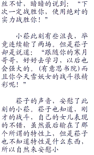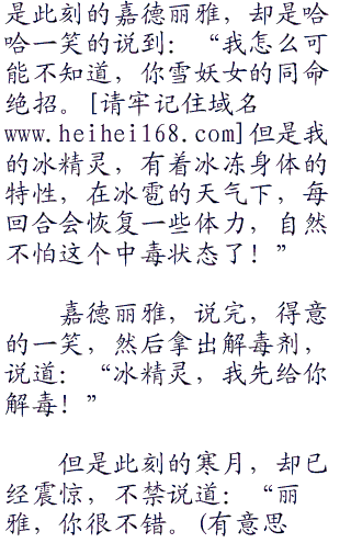 寒月这般想着,此刻的嘉德丽雅和小菘的战斗已经结束了。只见这一刻的嘉德丽雅大喊道:“表面涂层,将急冻光线返回去,然后在使用影子球!”