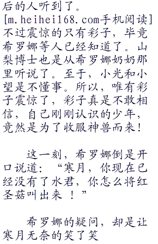 寒月无语了,但是此刻的希罗娜却是尴尬的笑了笑。