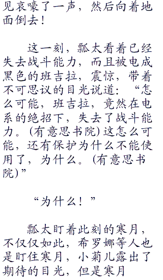 寒月露出了一丝自信的笑容,在这笑容下,瞬间一个惊天的电光,直接落到了班吉拉的身上。
