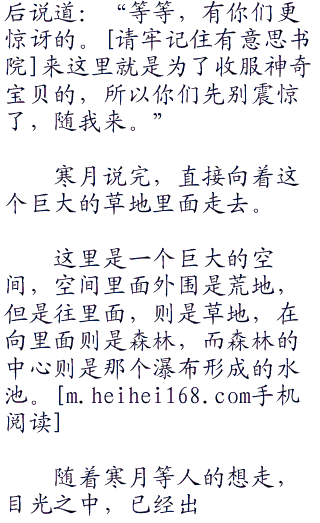 依旧是一个洞口,寒月直接走了进去,走进去的瞬间,却发现这里有些不同,这里是一片的荒地,但是却长满了花草树木,抬起头,却看到了一个洞口的出现,阳光正是从洞口落下来的。耳边传来了瀑布的声音,转头一看,却是看到了一个巨大的瀑布出现在寒月的目光之中。