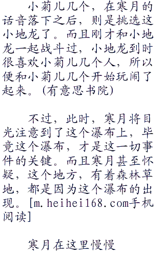 寒月微微的一笑,然后带着一丝笑意的目光,说道:“噩梦神,你告诉这些剩下的小精灵,让他们以后也居住在这里好了,和小地龙群和平相处,毕竟就是一个瀑布,这么大,小地龙群也用不完。”