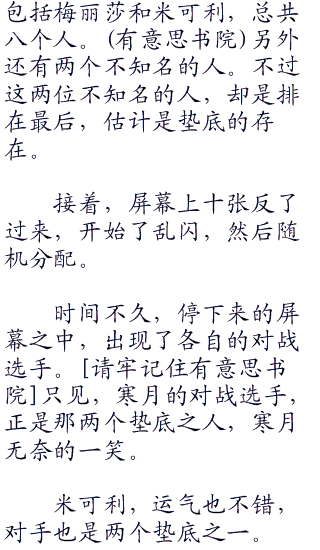 米可利,这般说着。寒月只能微微一笑,因为寒月就是这么想的。