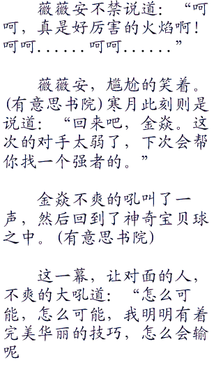 虽然,华丽大赛后半部分的比赛,是华丽战斗,而且有着各种各样自的规则。但是遇到你,估计一个绝招直接将对方的神奇宝贝,给打成失去战斗能力,那别人考看什么啊!”
