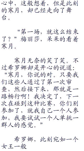 此刻的寒月,回到了后台,却是发现,很多人,看自己的眼光都不一样了。