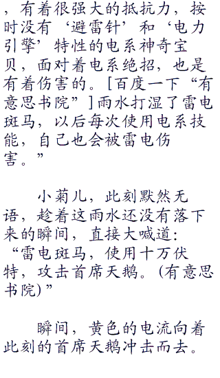 小菊儿,看到了首席天鹅的动作不由微微一愣,然后暗道:“不好,电系虽然对于电系的绝招