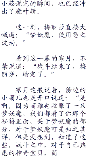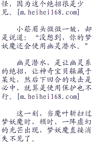 梅丽莎,看着魔叶斩,目光之中出现了一丝笑容,然后大喊道:“梦妖魔,使用幽灵潜水。”