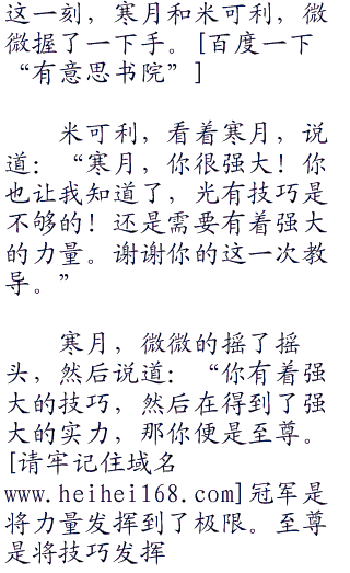 米可利带着感慨,然后看着此刻的寒月,不禁暗道:“还是实力太差啊,光有技巧也不行啊!没有足够的实力,有技巧也不行啊!直接一力降十会,我这次真是惨败啊!”