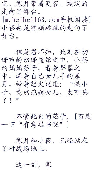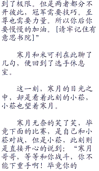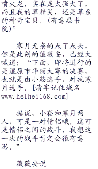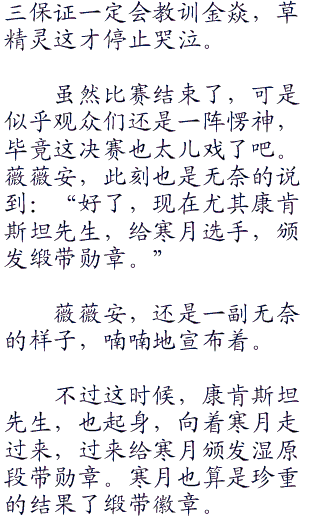 薇薇安,无奈的摇了摇头,然后再次看向了寒月,然后说道:“胜利者,是寒月选手。”