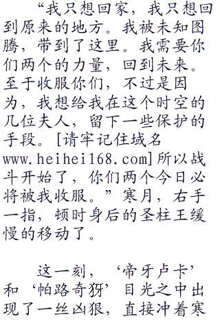 三圣菇,气喘吁吁的回到了寒月的身边,也是目光注视着两只超神兽。