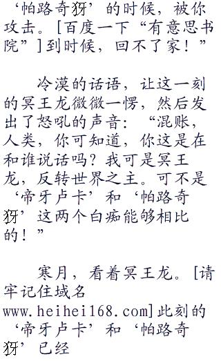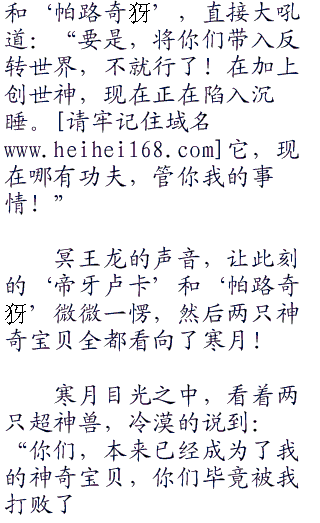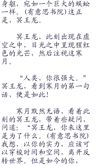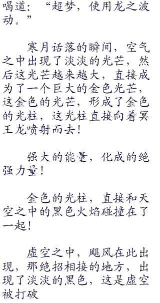 这时候,寒月看着虚空之中出现了一丝震荡,不由的漏出了一丝谨慎,然后默默的说道:“冥王龙,你要来了吗?”