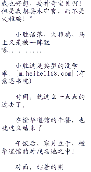 小胜刚说完这句,顿时,路比傻眼了。但是,小胜,却是遭到了火稚鸡一阵猛啄.............