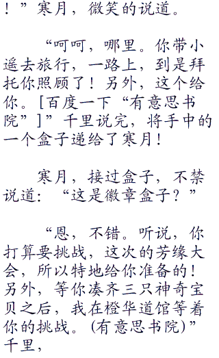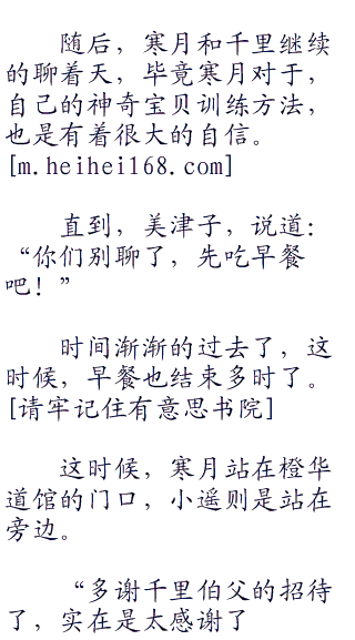 寒月,连忙摇了摇头,说道:“没有的事,我就是昨天晚上,看千里伯父,给我的那个训练秘籍,看的有点晚了!还真别说,千里伯父,你的训练方法,实在太厉害了!我以前训练神奇宝贝的时候,总是想着从神奇宝贝的身体上去出发,但是没想到,神奇宝贝的内在,身体之中,还有这更多的训练处。”