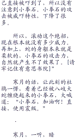 寒月说完,这是的杜鹃,已经说道:“我知道你,寒月是吧!对于,你的大作,我可是深深拜读过,真是太深奥了!没想到,我今天会遇到你的挑战,真是令人无法想象。”