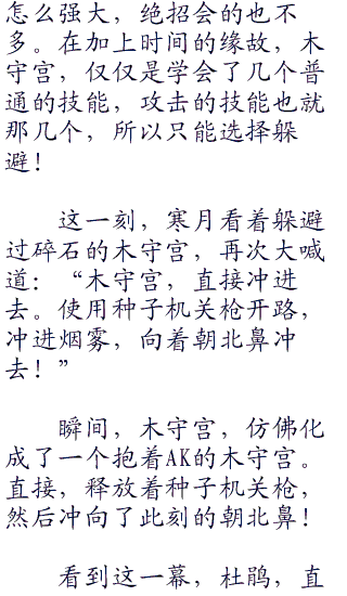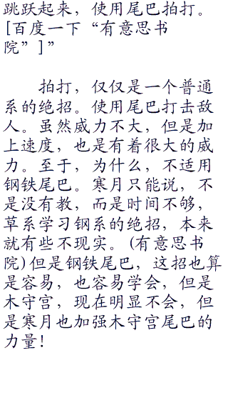 寒月的木守宫,嘴中含这一个树枝,这树枝极其锋利。毕竟,木守宫有这个习惯,寒月也按照这个习惯,给木守宫,增添一个绝招了!