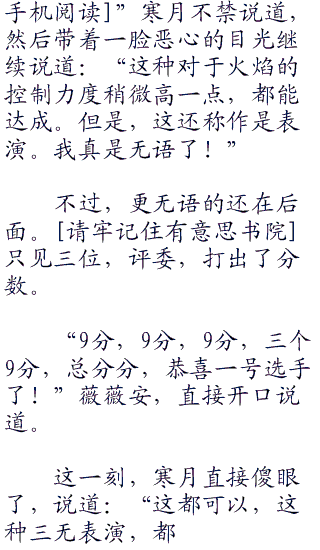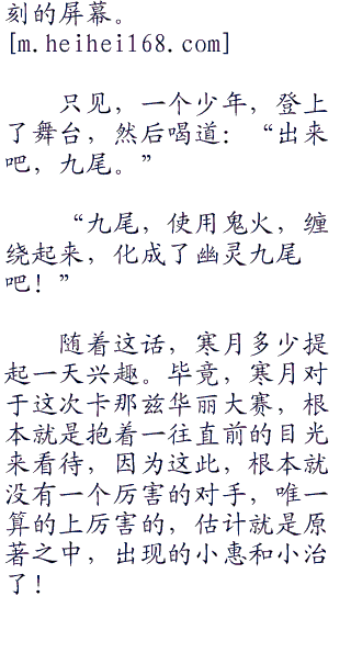 寒月,听到华丽大赛的开始,也从沉睡之中,清醒过来,然后看着此