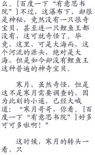 看到这个巨大的树藤,寒月不禁说道:“刚才,感觉到的生命,应该就是这个树藤了。但是没想到,这个地下洞窟里面,竟然还有着这么一个瀑布,还有这么一个树藤!”