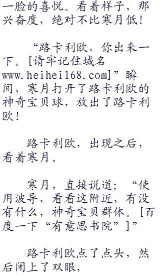 这一刻,寒月带着小遥,向着一个地方走去。此刻的小遥,也是一阵的兴奋,显然,这有发现了,小遥也兴奋!