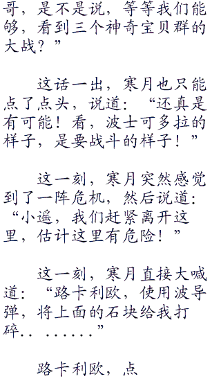 也不知道行走了多久,这时候的小遥,一脸的不爽,看着寒月,直接说道:“寒月哥哥,我们走好快半个小时了。结果,连一只可可多拉都没有看到。”