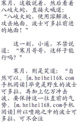虽然说,此刻的八岐大蛇,仅仅是一只未进化的八头阿伯蛇罢了,但是其恐怖的样子,也不是一般神奇宝贝能够相比的。不过,寒月估算过,要是等到阿伯蛇进化成,阿伯怪之后,那恐怖更是平添几倍!