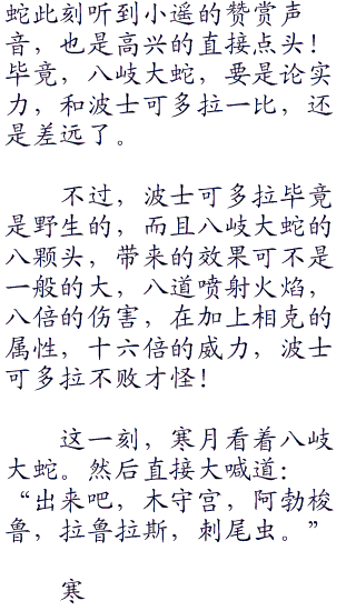 随着,寒月的一声令下,顿时空地上出现了一只八岐大蛇。