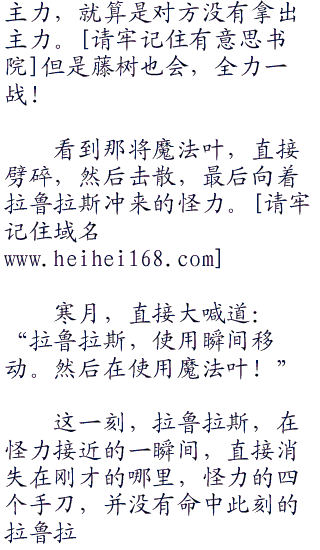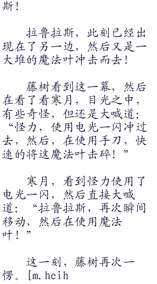 寒月,无奈的一笑,说道:“没关系。下面我可是上了,拉鲁拉斯,使用魔法叶!”