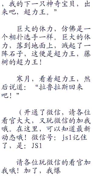 寒月,默然无语,只能拿出了神奇宝贝球,说道:“我的第一只神奇宝贝,就是你了。出来吧,拉鲁拉斯!”