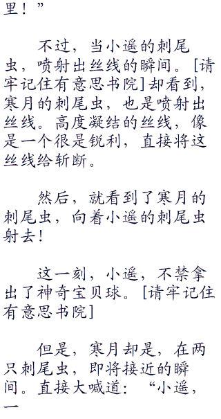 寒月,看着小遥认真的表情,以及那熟练使用刺尾虫,下达指令的样子。不禁点了点头,说道:“小遥,你却是成长了很多!既然是毒针,那么刺尾虫,你也使用毒针!”