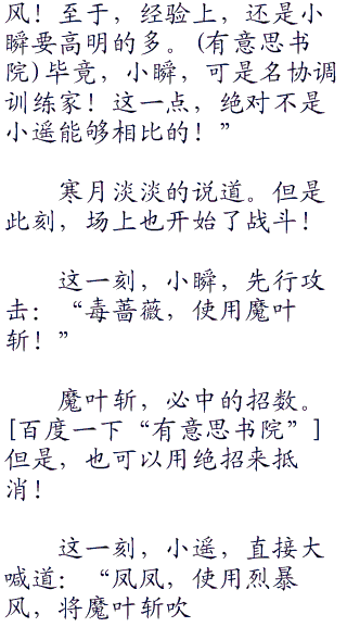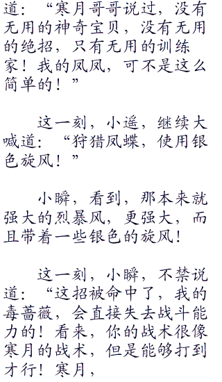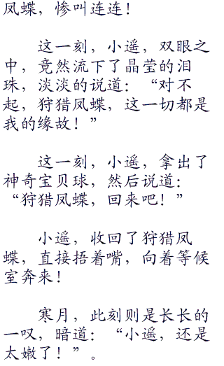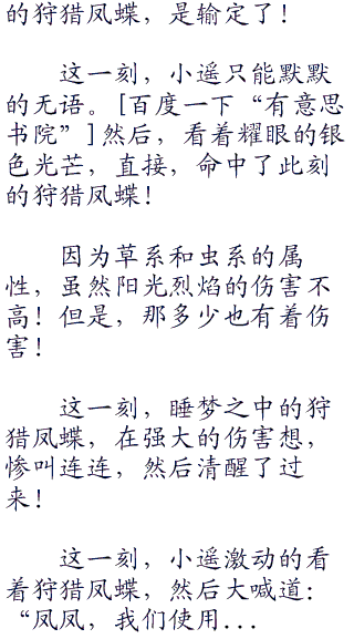 寒月,看着对战场地上的小遥和小瞬,不禁说道:“属性上,小遥的狩猎凤蝶,占绝对的上