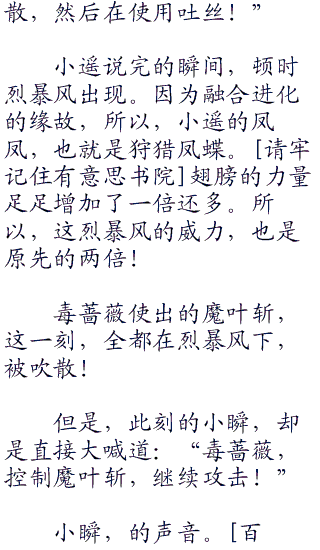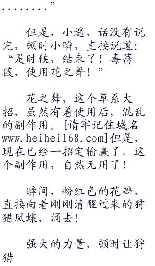 小瞬,也是带着一些严肃的目光,看着此刻的小遥,然后说道:“出来吧,毒蔷薇!”