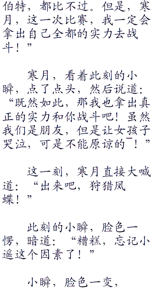 小遥,抬起头,略带微红的双眼,看着寒月,不禁说道:“寒月哥哥,我知道,谢谢你的安慰。我并不惧怕失败,但是刚刚是我的失误,我在战斗的时候,走神了!凤凤,已经很努力了。是我,不能够运用狩猎凤蝶!”
