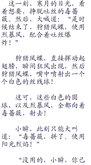 寒月,默然无语,然后淡淡的说道:“既然如此,那就更加努力的去训练吧!你要,带着狩猎凤蝶的那一份,一起去努力。”