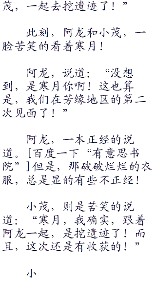 寒月,看到两人,不禁说道:“小茂,阿龙,你们连个怎么在这里。还有,你们这一身衣服,是什么情况。阿龙,你是不是带着小