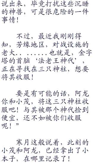 寒月说完,小遥点了点头,说道:“好的,寒月哥哥!”
