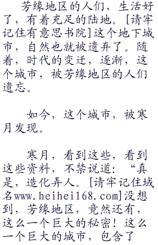 寒月,震惊看着这一幕,不禁说道:“这,这怎么可能。这地下,真的有着一个城市!”