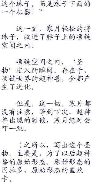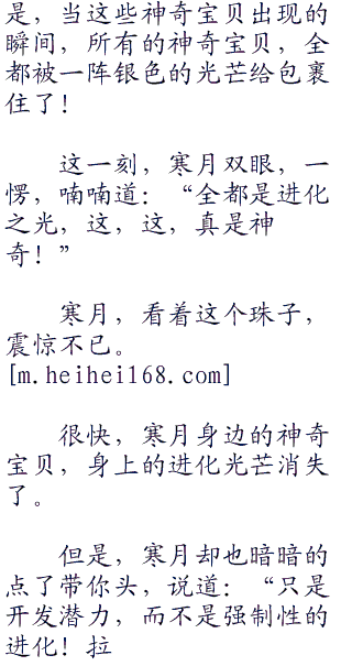寒月,看到这光芒,不禁说道:“这是,进化的光芒。这到底是怎么一回事,我没有使用超进化啊!”