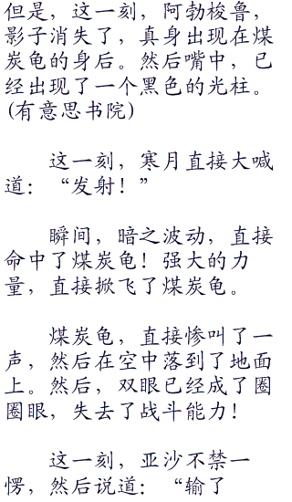 寒月,看着煤炭龟,不禁说道:“很坚定的意志啊!”