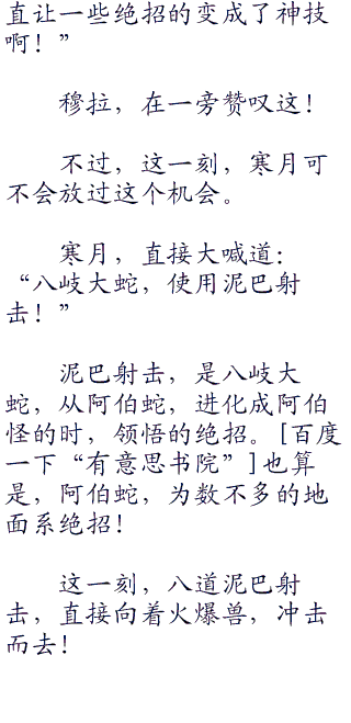 小遥则是一愣,说道:“阿伯蛇,竟然进化了!阿伯蛇吗。”