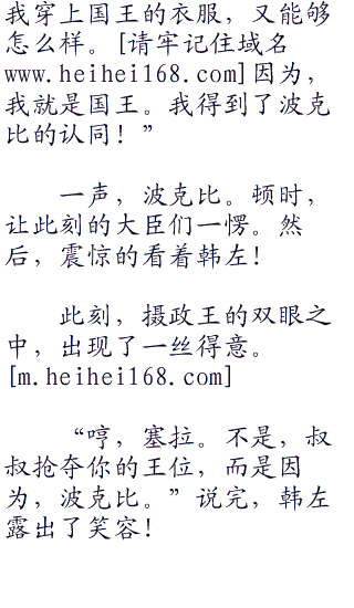 这一刻,波克比王国的大臣们,全都震惊的看着韩左,然后冷喝道:“摄政王,你这是想干什么。穿上国王的衣服,你这是在谋反!”