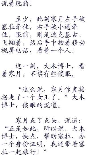 淡淡的一句话,换来的,却是一群波可比,围绕着寒月,然后让寒月漂浮在空中,寒月全身被光芒包裹住!