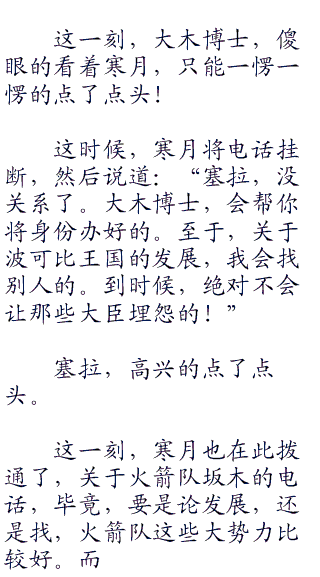 所有人都震惊了,尤其是一群大臣,用着一股坚定的双眼看着寒月,让寒月不寒而粟,暗道:“你们这么看着我干什么,难道有什么不好的事情发生!”