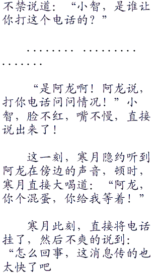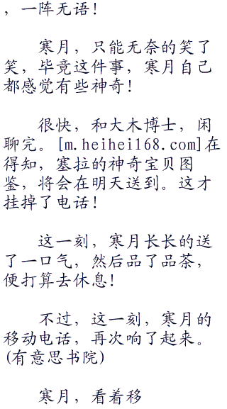 寒月,手指在移动电话上,缓缓的拨打了一个号码!