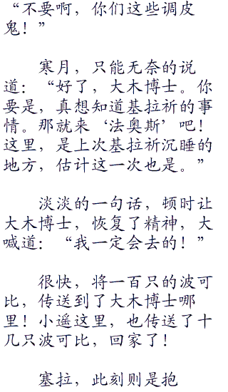 这一刻,寒月直接傻眼了,然后连忙说道:“基拉祈,停止啊!”