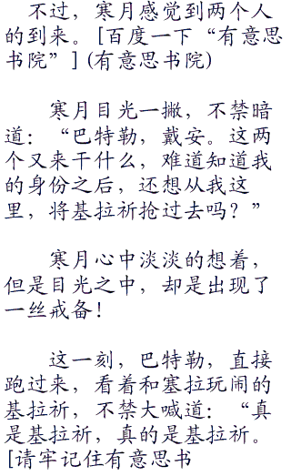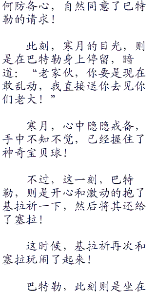 寒月,此刻差点摔倒。对于,这个完完全全就是小孩子心智的基拉祈,只能无语!