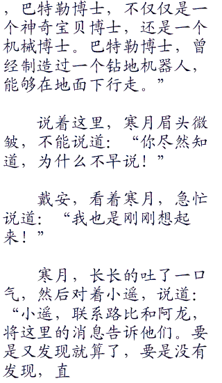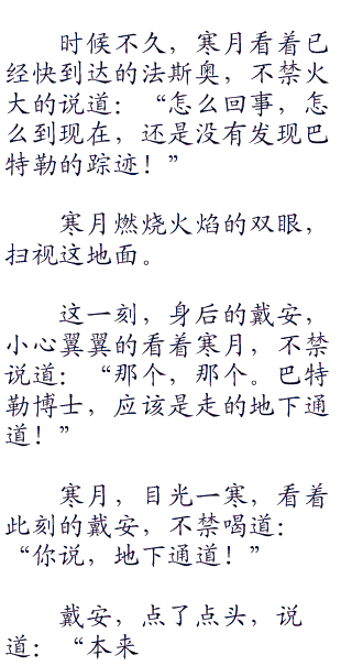 寒月,看着空无一人的地面,不禁问道:“戴安,巴特勒,到底走的那条路。”
