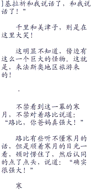 这一刻,寒月将手中的基拉祈,递给了小遥和塞拉!说道:“你们,两个好好的保护基拉祈。基拉祈也已经摆脱了它的宿命,现在你们就好好的照顾它吧!”